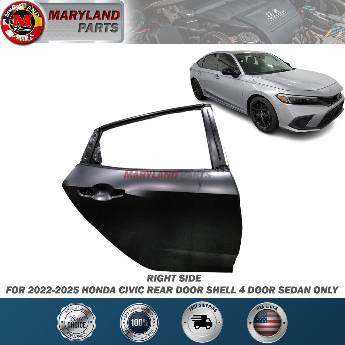 For 2022-2025 Honda Civic Right Rear Door Shell 4 Door Sedan Only OEM Compatible 67510T20A00ZZ