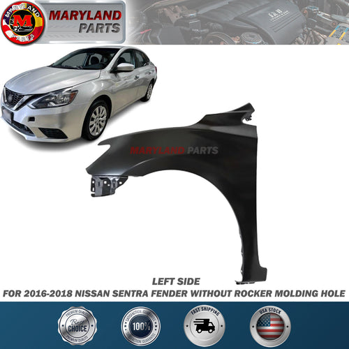For 2016-2018 Nissan Sentra Left Fender without Rocker Molding Hole Driver SideMaryland Parts