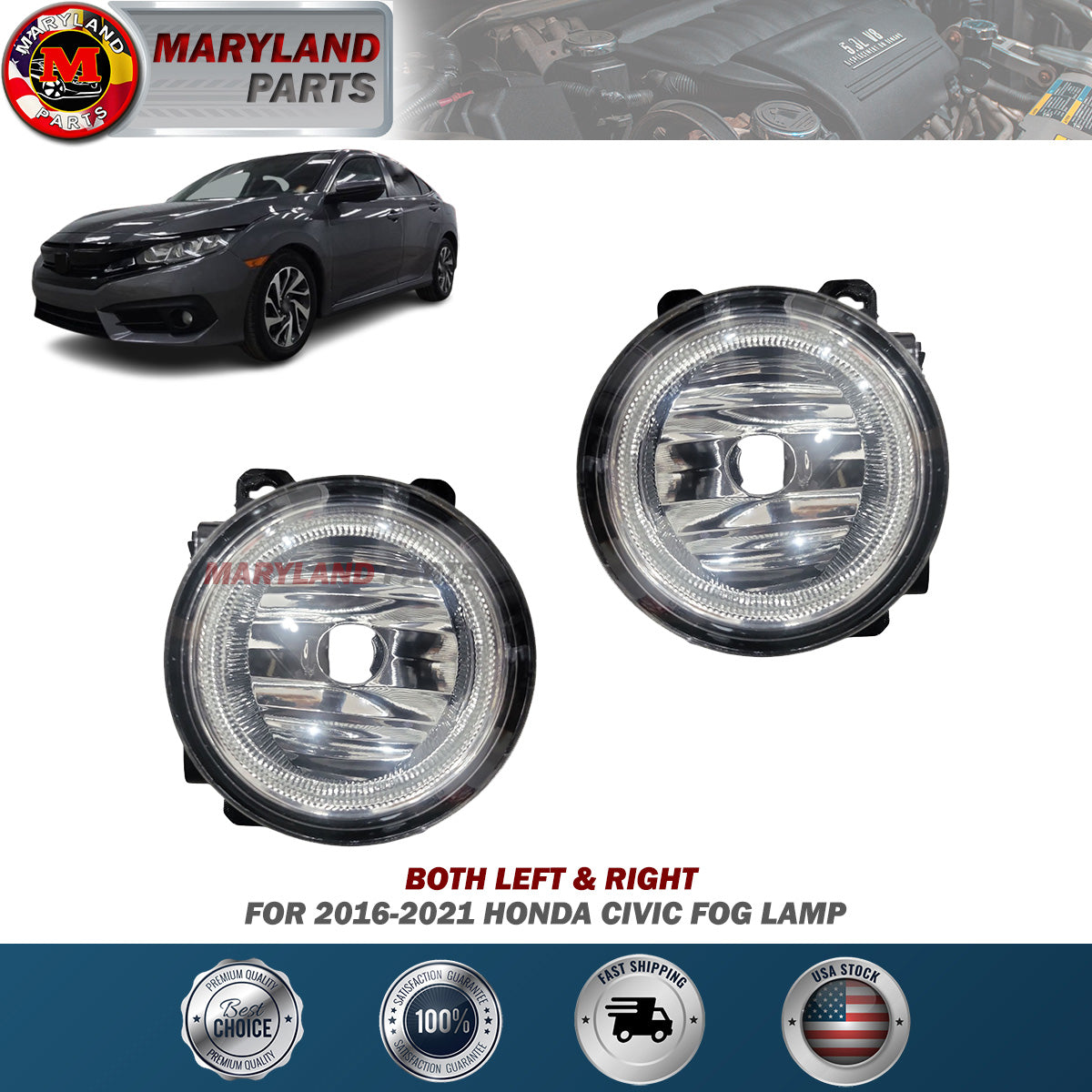 For 2016-2021 Honda Civic Both Left & Right Side Fog Lamp Sale